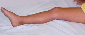 Body asymmetry is the most common anomaly associated; other associations. The body asymmetry is manifest as hypertrophy or hypotrophy of the affected limb; other possibly coincidental malformations include congenital glaucoma, syndactyly, renal hypoplasia, and Kartagener syndrome. However, macrocephaly-cutis marmorata telangiectatica congenita is a recently recognized syndrome.Children with cutis marmorata telangiectatica congenita are at risk of neurologic abnormalities and life-threatening complications. Note the image below.