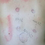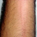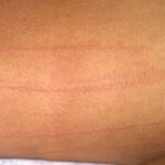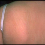 • Delayed dermographism: Approximately 3-8 hours after the immediate dermographic response, a deep, tender, burning wheal returns to the same site and persists for up to 48 hours. This form is recalcitrant to conventional therapy and is closely related to pressure urticaria.