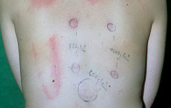 • The results from hematological and biochemical screening tests are normal. In some patients, an increase in blood histamine levels is seen after experimental scratching.