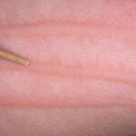 Itching and whealing can affect all body surfaces, but the scalp and genitalia are less frequently involved. However, dyspareunia and vulvodynia have been reported in patients with symptomatic dermographism.3 Rarer forms of dermographism include the following: