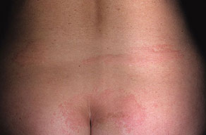 • Red dermographism: Repeated rubbing induces small, punctate wheals that are more prominent on the trunk than on the limbs. This form is possibly associated with seborrheic dermatitis.