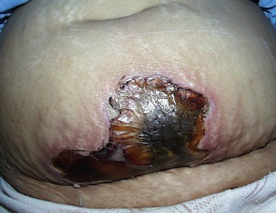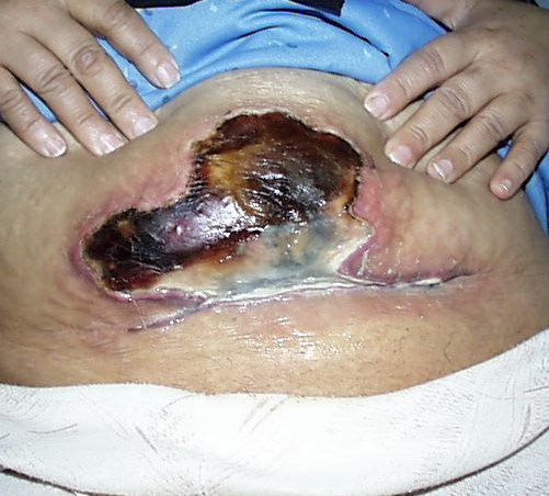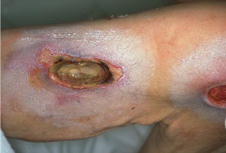 At first, the area will become reddened but it gradually progresses to a brownish color. The skin may appear waxy. In the final stage, the affected body part will look withered and black in color. Gangrene is treatable if the symptoms are recognized early, before the death of tissue occurs. After tissue dies, removal of the dead tissue or amputation is the usual treatment.