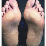 Hereditary palmoplantar keratodermas (PPKs) are a highly heterogeneous group of skin diseases, which primarily affect the palms, and soles or palmoplantar skin and involve thickening and hyperkeratosis. They can be inherited in both an autosomal dominant and recessive fashion. PPKs can be divided into three sub-groups according to their phenotype. Simple keratodermas manifest as lesions only on the palmoplantar skin, whereas complex keratodermas are associated with lesions of non-volar skin, hair, teeth, nails or sweat glands. Syndromic keratodermas are associated with abnormalities of other organs such as deafness, cancer, cardiomyopathy, and adrenal insufficiency.
