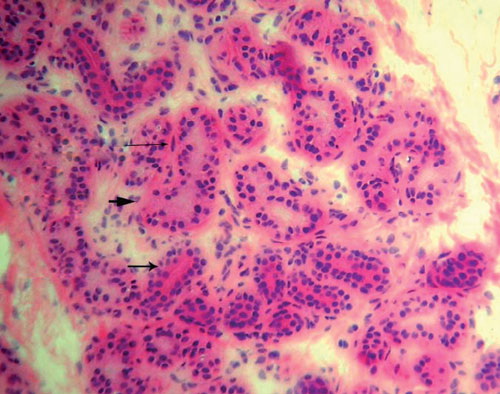 Eccrine unit situated in deep dermis = وحدةغدية ناتحة تتوضع في الادمة العميقة