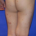 Nummular eczema (also nummular dermatitis) is predominantly a disease of adulthood. Men are more frequently affected than women. The peak incidence in both males and females is around 50 to 65 years of age. There is a second peak in women around 15 to 25 years of age. Nummular eczema is rare in infancy and childhood. The peak age of onset in childhood is 5 years.
