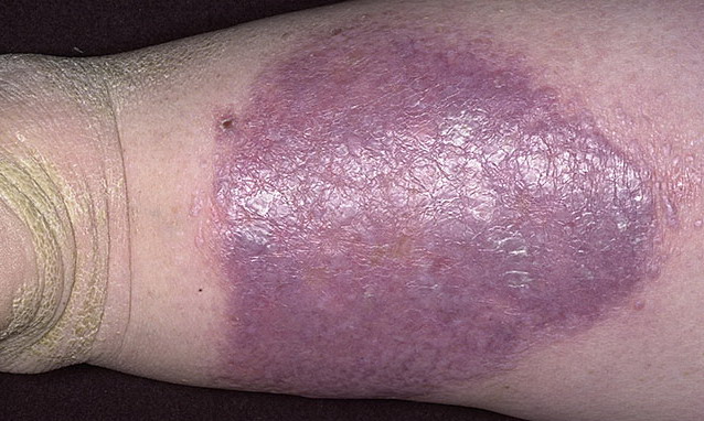 Histopathologic changes are reflective of the stage at which the biopsy is performed. Acutely, there is spongiosis, with or without spongiotic microvesicles. In subacute plaques, there is parakeratosis, scale-crust, epidermal hyperplasia, and spongiosis of the epidermis . There is a mixed cell infiltrate in the dermis. Chronic lesions may resemble lichen simplex chronicus microscopically.