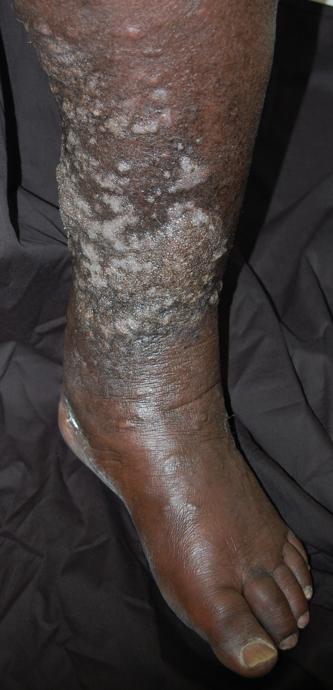 Recent studies have shown that a possible cause of elephantiasis in Africa may be related to the red soil on which certain barefooted populations live. It is believed that small chemical particles found in the soil may enter the skin through the bare feet. These particles then lodge in the lymphatic tissues and produce irritating effects. The traumatized tissue is then vulnerable to streptococcal infection.