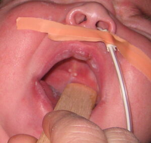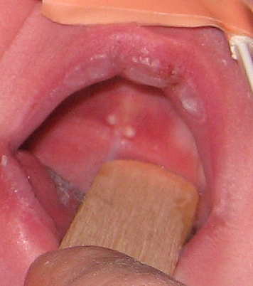 An exanthem due to EBV alone may also occur in a minority of cases (approximately 5 percent to 15 percent). This rash is also morbilliform and pruritic; however, usually it commences during the first few days of illness and resolves faster, typically in 1 to 6 days. Periorbital and eyelid edema may be seen in up to 50 percent of those with infectious mononucleosis. In approximately 25 percent of cases, an enanthem is noted. Six to 20 petechiae, measuring 0.5 to 1.0 mm, may be visualized at the junction of the hard and soft palate. Lesions may coalesce forming larger lesions.