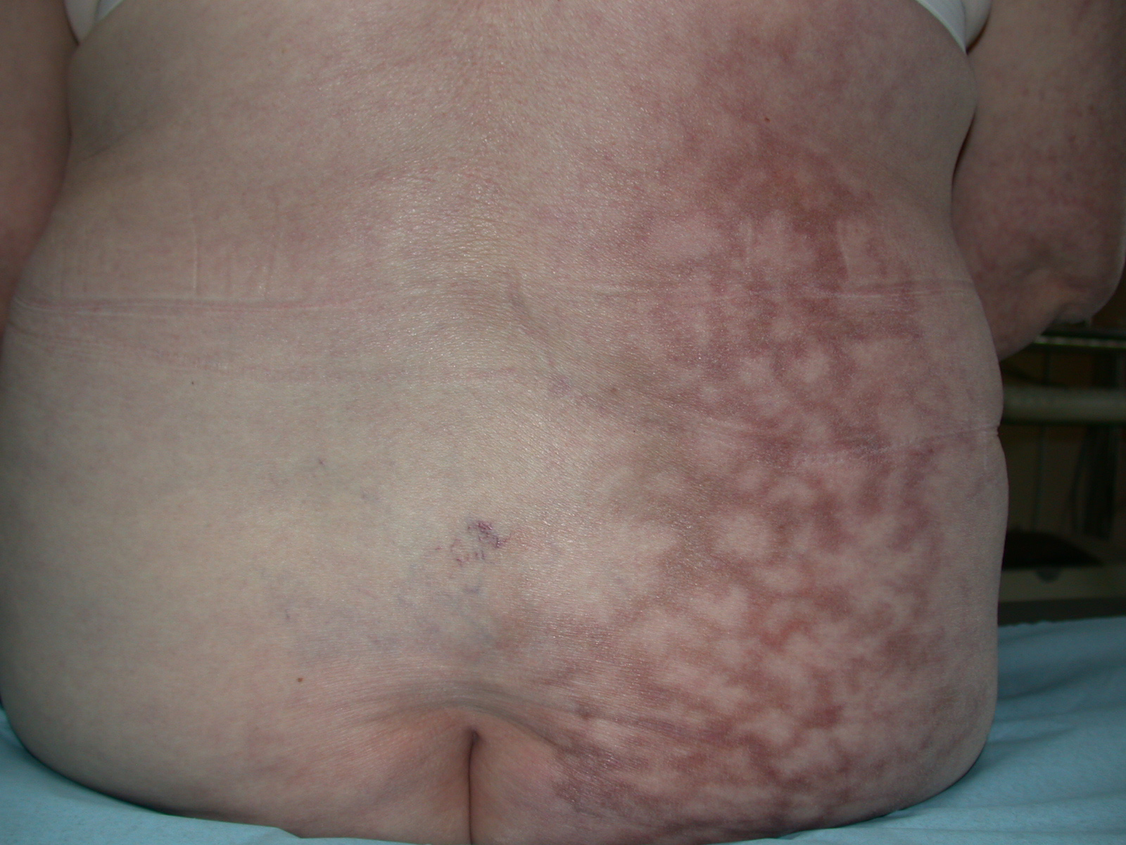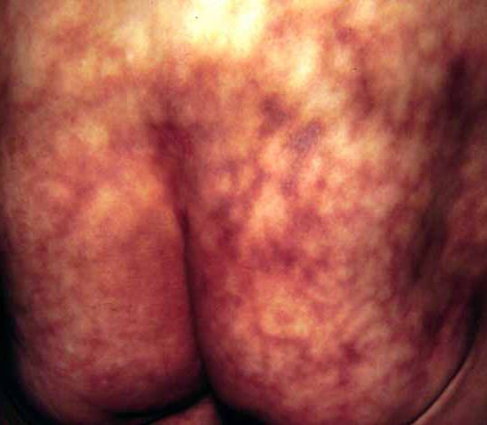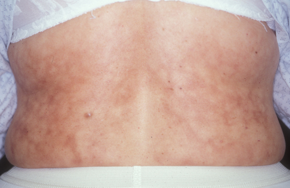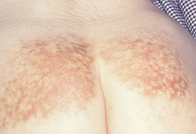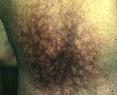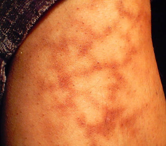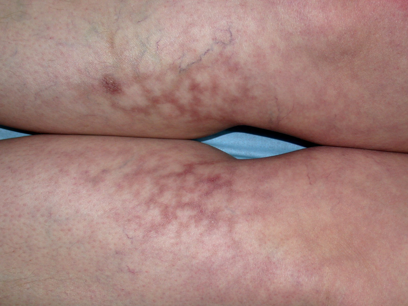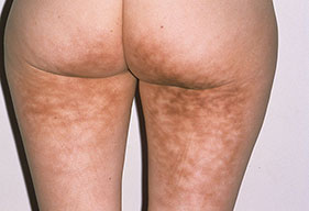 Erythema ab igne is caused by a chronic exposure to moderate heat. The reticular erythema can be accompanied by epidermal atrophy, scaling, and hyperpigmentation. It was frequently seen in the past in people who frequently sat in front of open fires for warmth, but it occurs less often since the introduction of central heating. Nevertheless, it is still seen after local application of heating pads, hot water bottles, or heating blankets. Modern appliances that have been reported to elicit erythema ab igne are furniture with built-in heaters, car heaters, and laptop computers