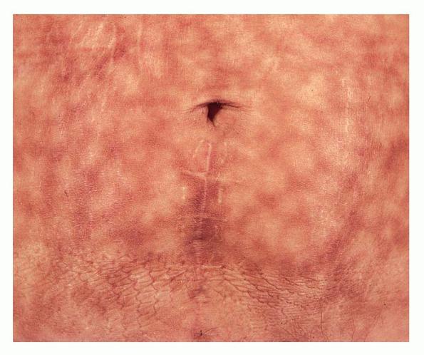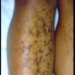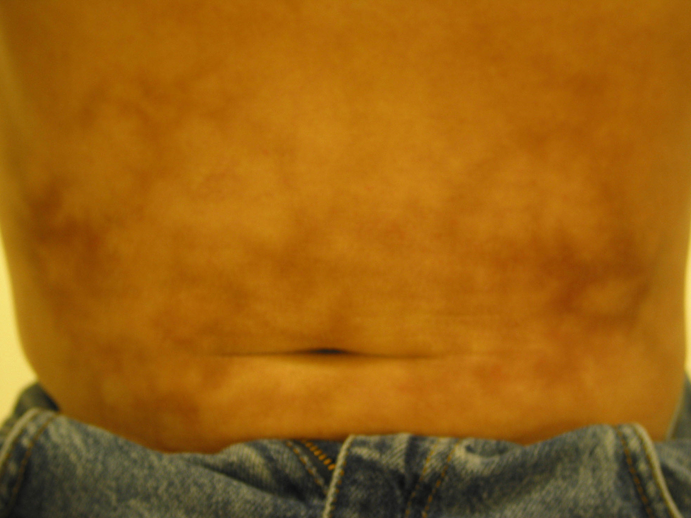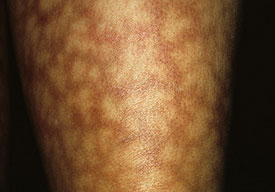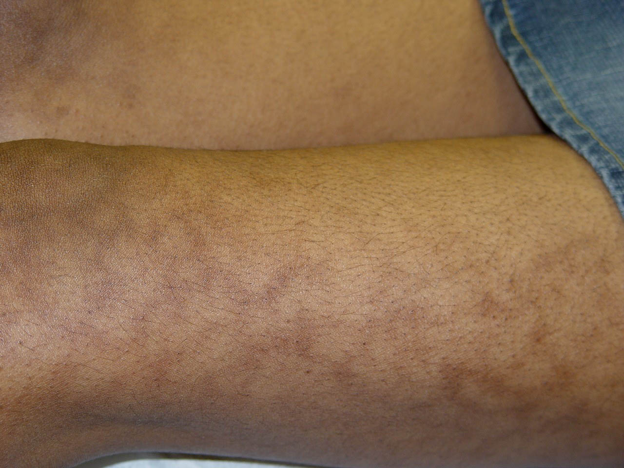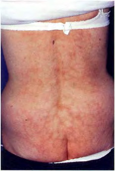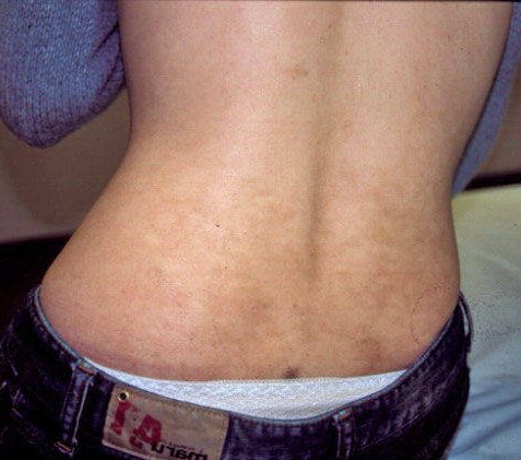 Erythema ab igne is caused by a chronic exposure to moderate heat. The reticular erythema can be accompanied by epidermal atrophy, scaling, and hyperpigmentation. It was frequently seen in the past in people who frequently sat in front of open fires for warmth, but it occurs less often since the introduction of central heating. Nevertheless, it is still seen after local application of heating pads, hot water bottles, or heating blankets. Modern appliances that have been reported to elicit erythema ab igne are furniture with built-in heaters, car heaters, and laptop computers