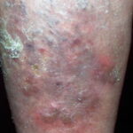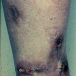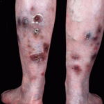 In those patients with a strongly positive Mantoux test reaction or when M. tuberculosis DNA is demonstrated in the cutaneous biopsy specimen by polymerase chain reaction techniques, a full course of 9 months of antituberculosis triple-agent therapy is recommended. Potassium iodide is also an effective and rapid treatment for erythema induratum of Bazin. Additional helpful measures include supporting stockings, bed rest, treatment of the venous insufficiency of the lower extremities, and orally administered nonsteroidal antiinflammatory drugs.