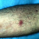 Currently, the terms erythema induratum of Bazin and nodular vasculitis are used as synonyms by most authors to describe the most common form of lobular panniculitis with vasculitis. Some investigators, however, prefer to retain the name erythema induratum of Bazin for those cases in which an etiologic relationship with tuberculosis is demonstrated and refer to the remainder of cases as nodular vasculitis. In some geographic areas, but not in others, polymerase chain reaction investigations have demonstrated that Mycobacterium tuberculosis DNA is present in most of the cutaneous biopsy specimens of patients with erythema induratum of Bazin, supporting the notion that tuberculosis is the most important etiologic factor for this panniculitis.