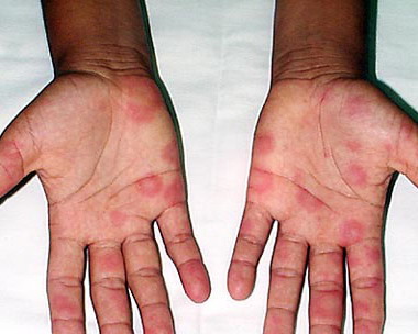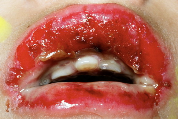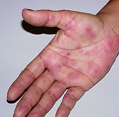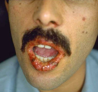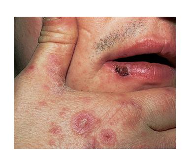 • ·         Erythema multiforme major: Skin lesions with involvement of mucous membranes