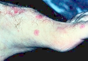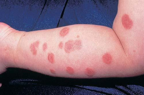 The skin rash arises abruptly. In most patients, all lesions appear within 3 days, but in some, several crops follow each other during one episode of EM.