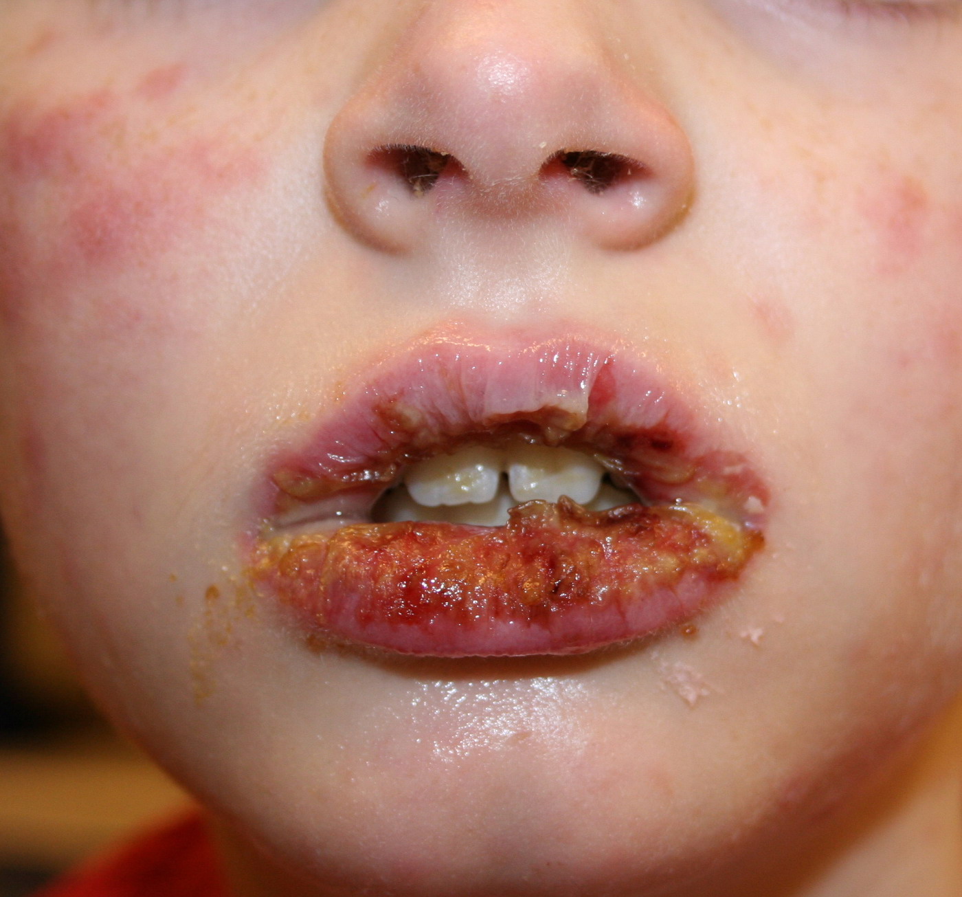 • ·         Erythema multiforme minor: Skin lesions without involvement of mucous membranes