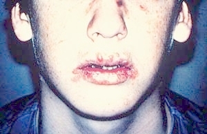 In more than 70 percent of patients with recurrent EM, an episode of recurrent HSV infection precedes the rash; the association with herpes labialis predominates over that with genital herpes or herpes in other locations. EM usually follows recurrent herpes but may also occur after primary HSV infection. The average interval is 7 days (range, 2 to 17 days); the duration of the lag period appears to be specific for individual patients. In a