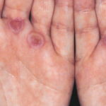 ▪ EM-like lesion plus lichenoid papules