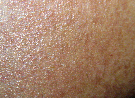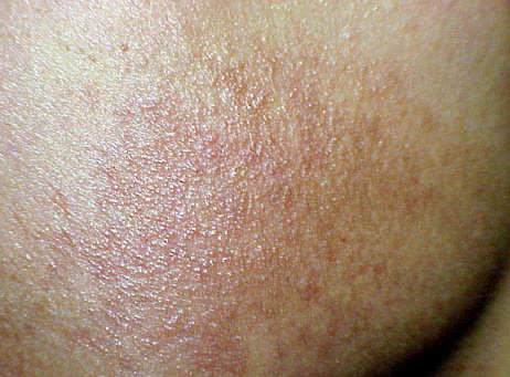 The histologic features, although nondiagnostic, correlate well with the clinical features. The possible relationship to keratosis pilaris rouge is discussed.