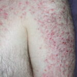 Patients consciously create neurotic excoriations by repetitive scratching. Neurotic excoriations should be distinguished from dermatitis artefacta, in which patients create lesions for secondary gain. Neurotic excoriations can be initiated by some minor skin pathology, such as an insect bite, folliculitis, or acne, but it can also be independent of any pathology. Because no significant underlying pathology is present in the skin, neurotic excoriations are really a psychologic process with dermatologic manifestations. Many doctors lack an extensive understanding of neurotic excoriations and its treatment.1