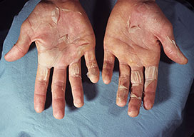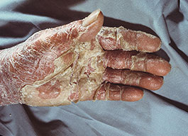 The skin is constantly generating new skin cells at the lower layer (the dermis) and sending them to the surface (the epidermis). As the cells rise to the surface they gradually die and become filled with keratin. These keratinized skin cells are essential because they give our skin its protective quality. But they are constantly sloughing off to make way for