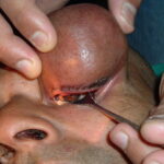 • In one study, 25 benign tumors on the forehead and brow of children and adolescents were successfully removed by means of endoscopic excision. Of these, 6 were classified as dermoid cysts. Dermoid cysts on the forehead and brow are known to cause pressure-related erosion of the underlying bony tissue, and surgical intervention may be helpful.