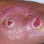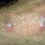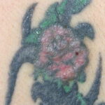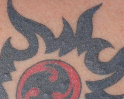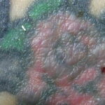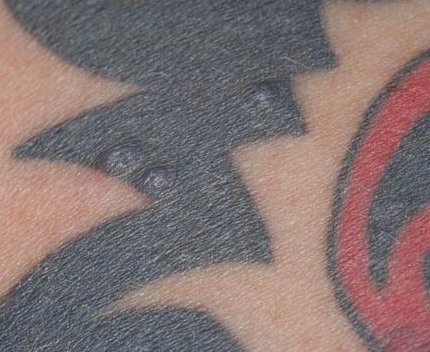 Tattoo material- Extracellular pigment is identified and may induce local sarcoidal granulomas.