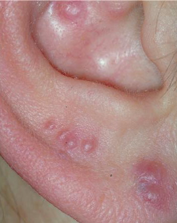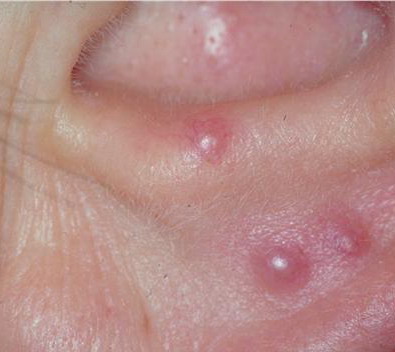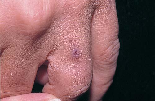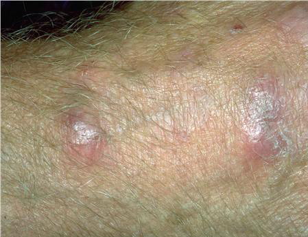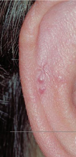 These localized lesions may occur at any age and clinically present as papules, plaques or nodules.