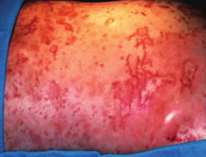 • When the tumor is disseminated, surgical management is used to palliate symptoms. Since NME is the major source of morbidity in glucagonoma syndrome, palliative therapies are aimed at reducing the cutaneous eruption. Tumor debulking has been shown to decrease the intensity of the cutaneous symptoms by reducing the level of serum glucagon.