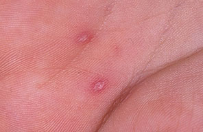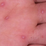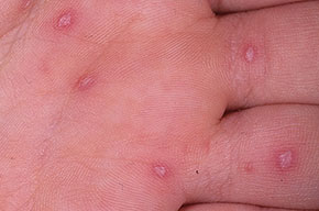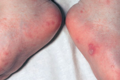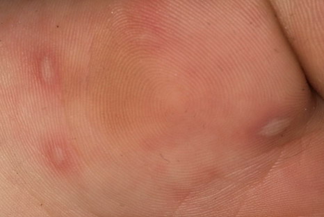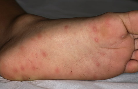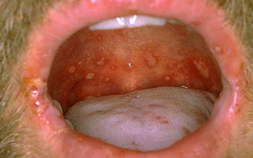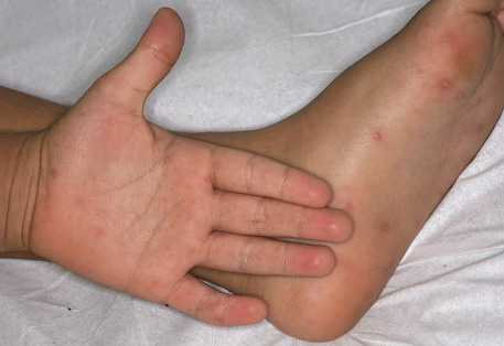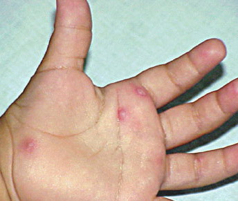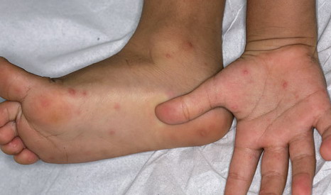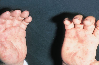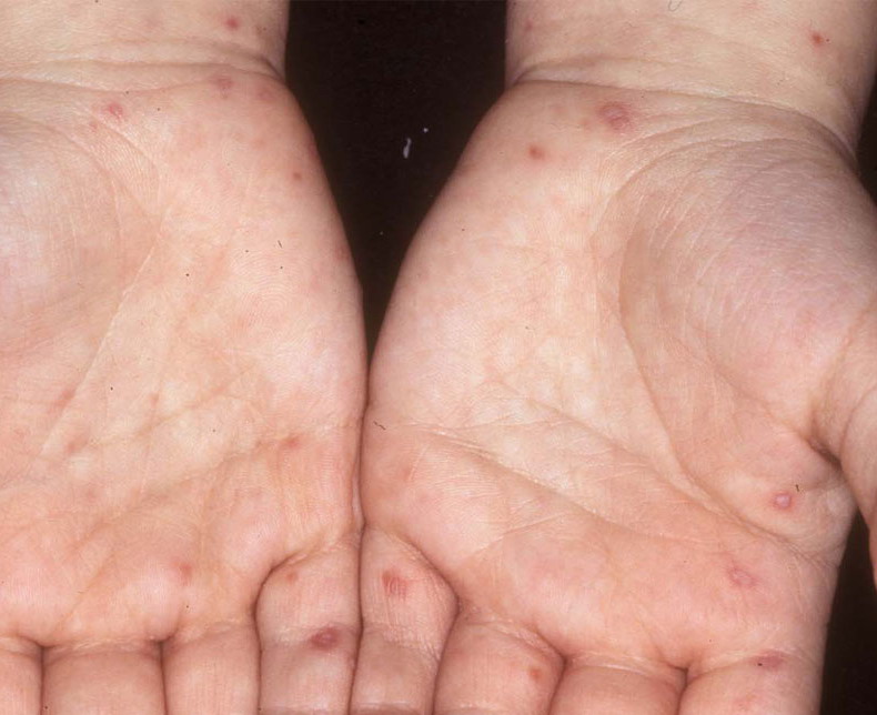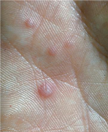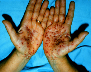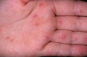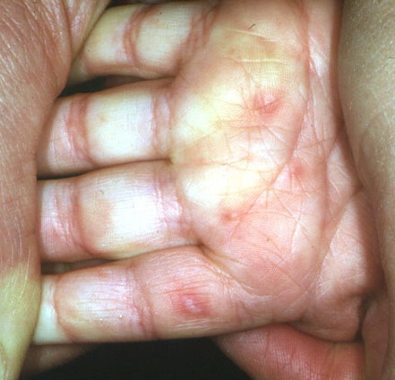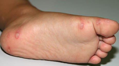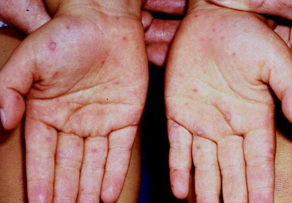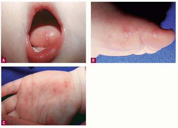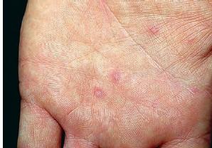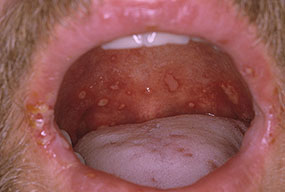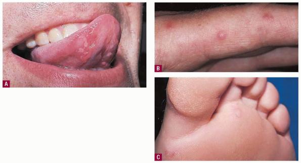 · Erosions in the mouth and papulovesicles on the palms and soles.