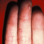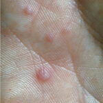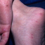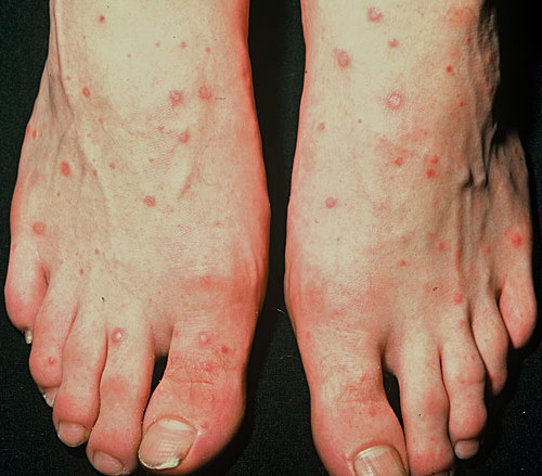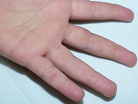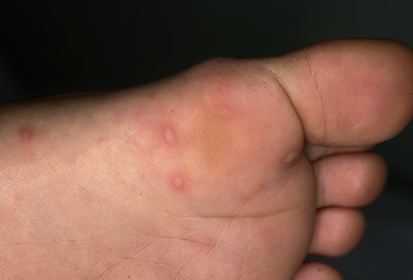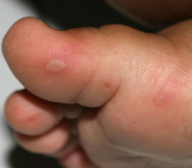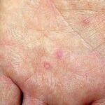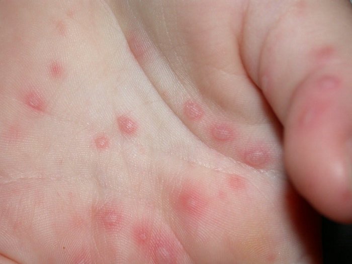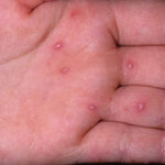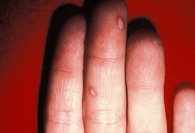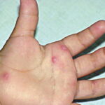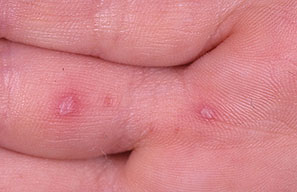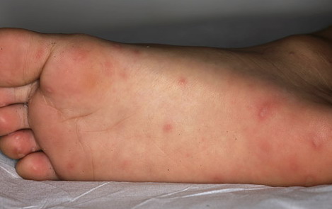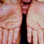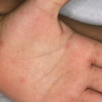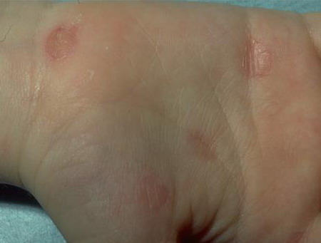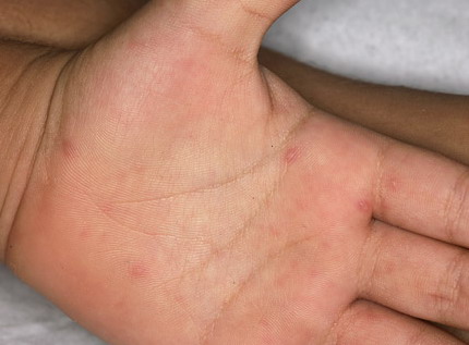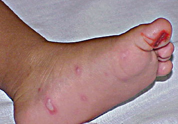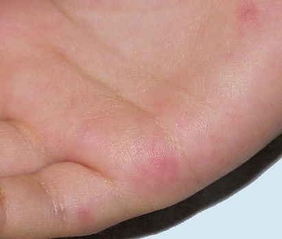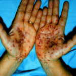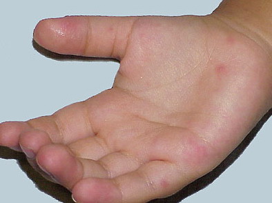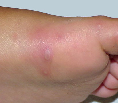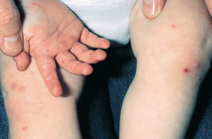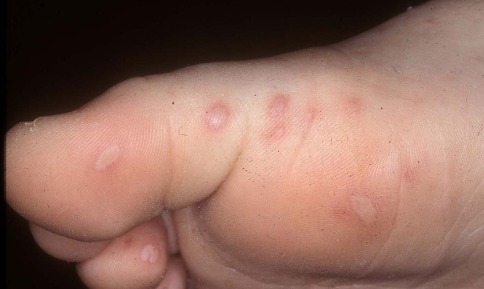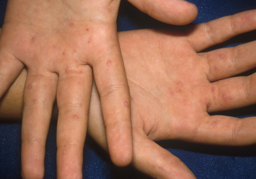 · Erosions in the mouth and papulovesicles on the palms and soles.