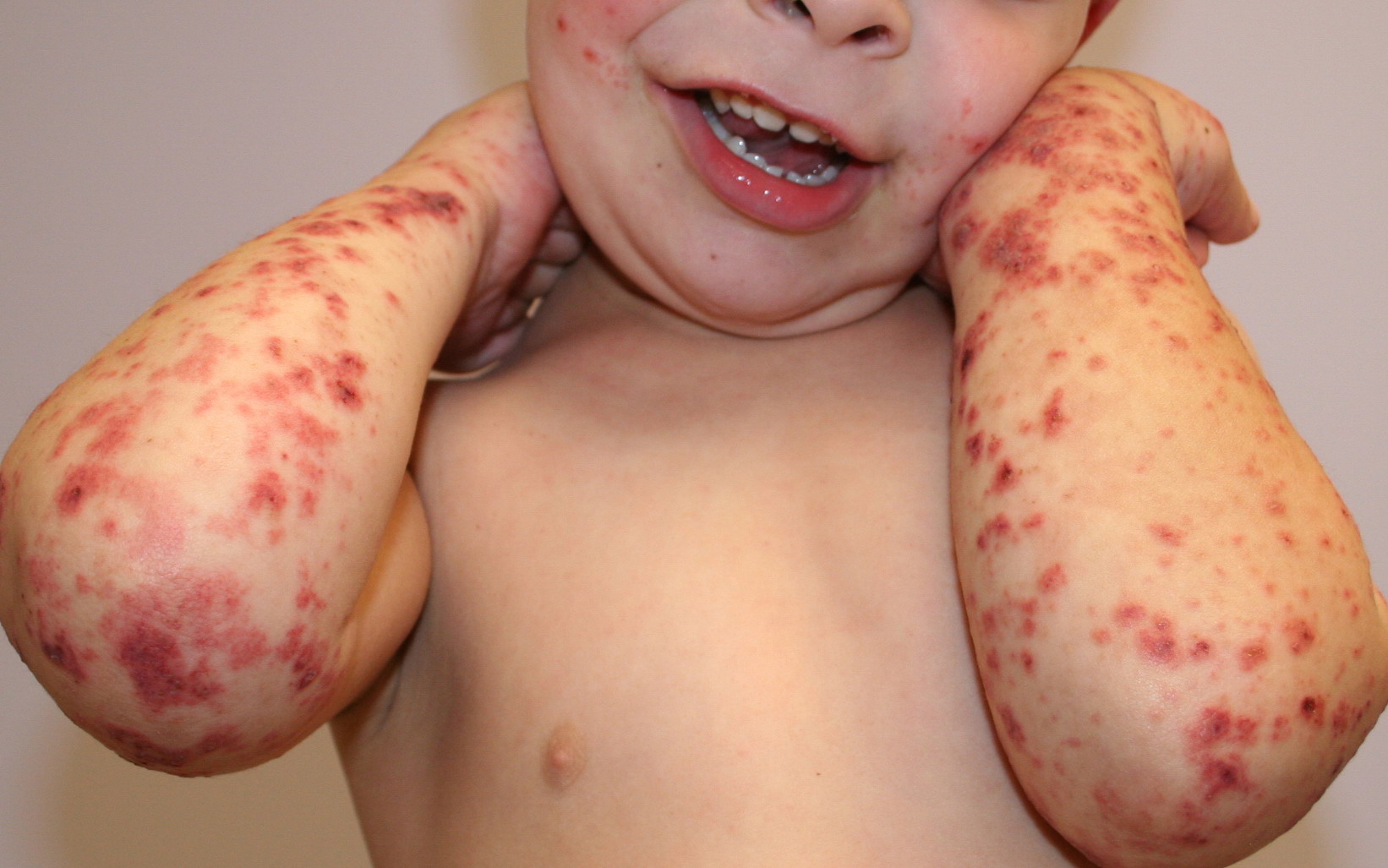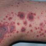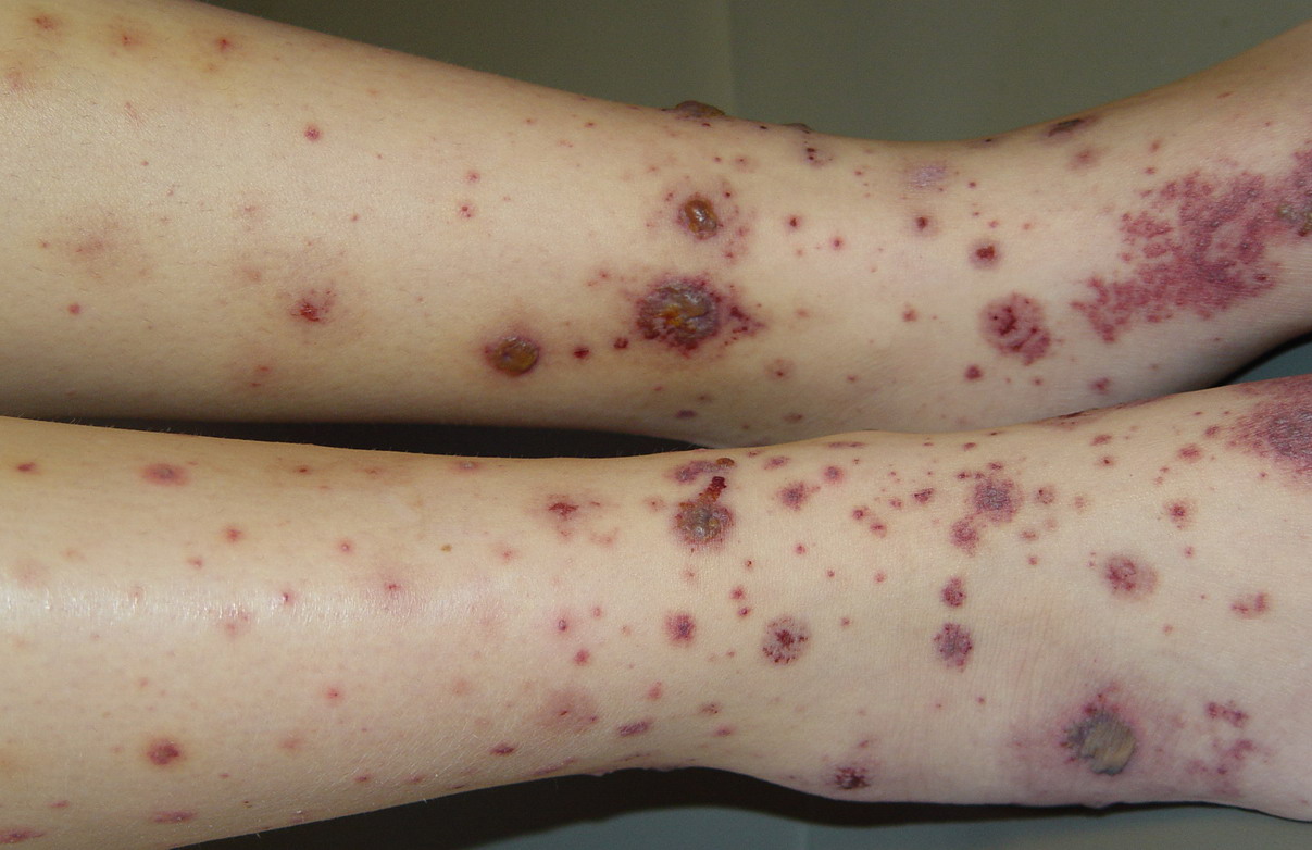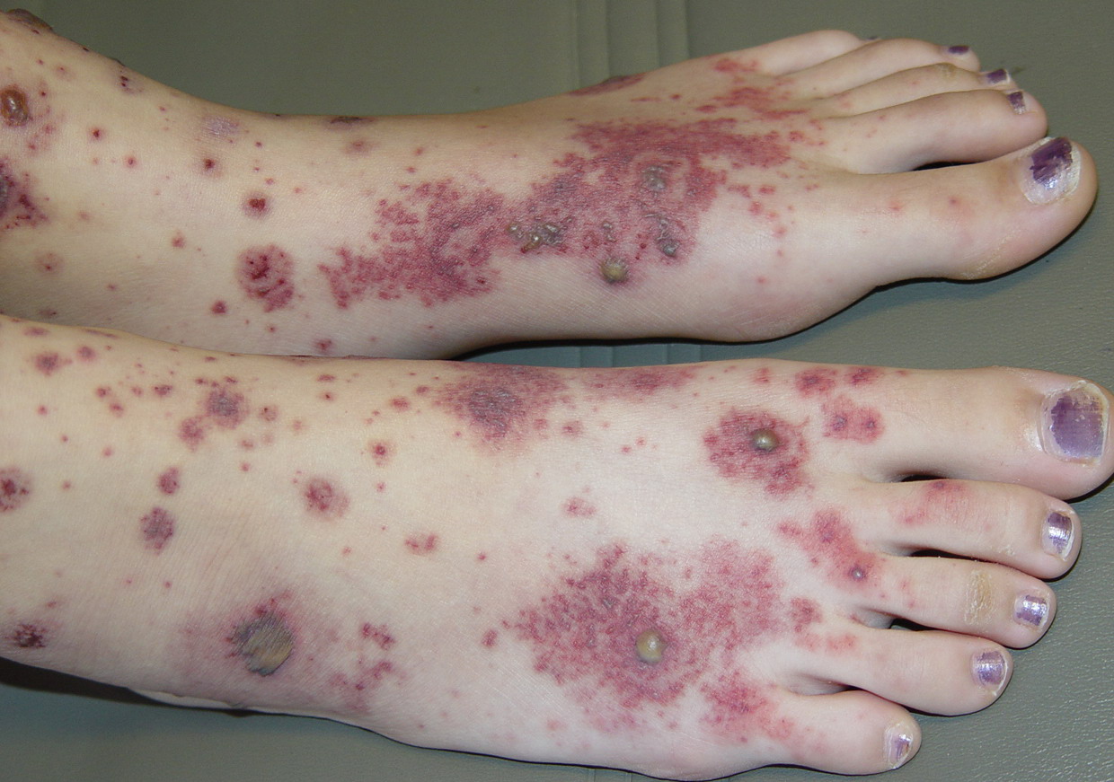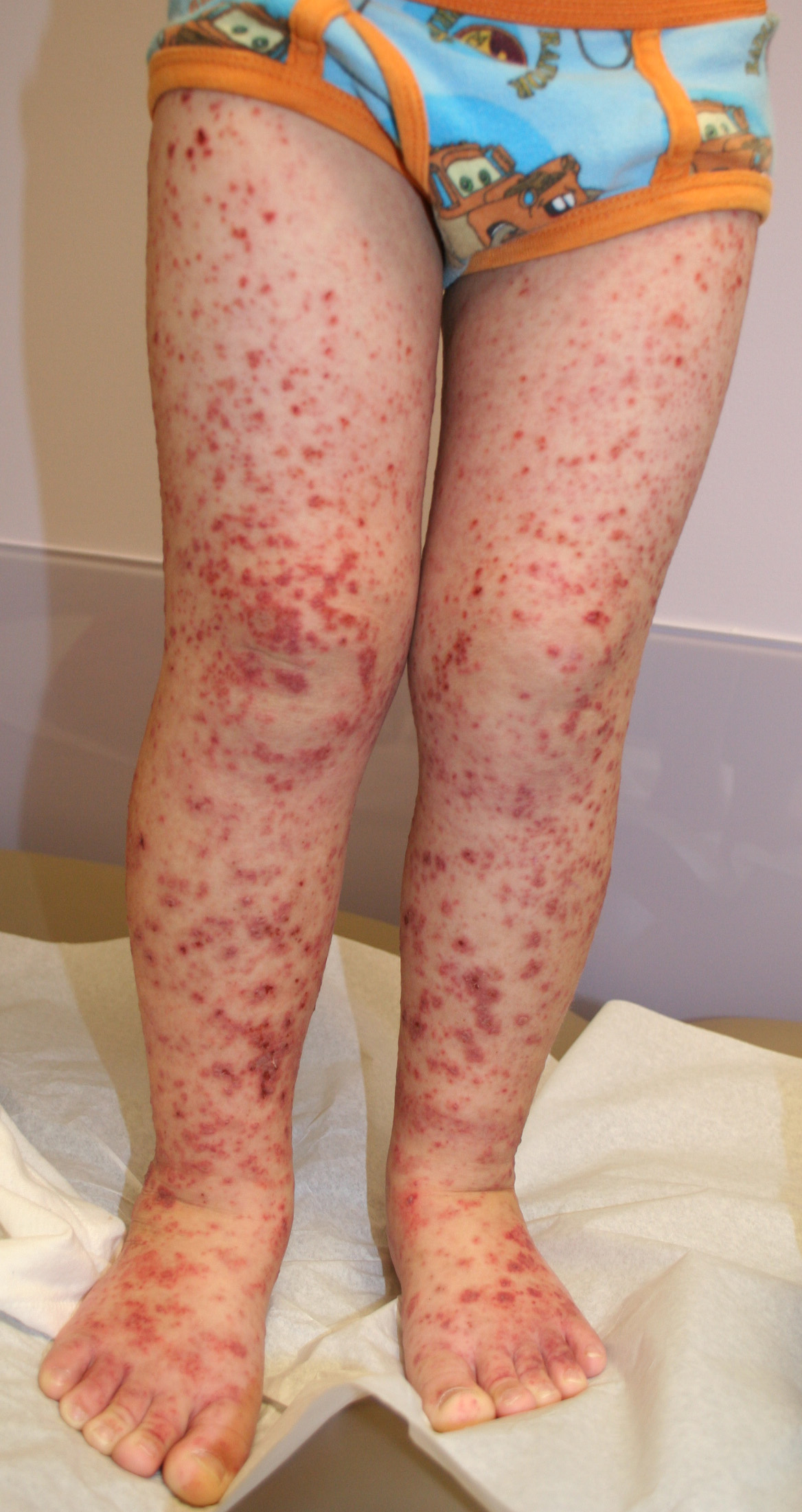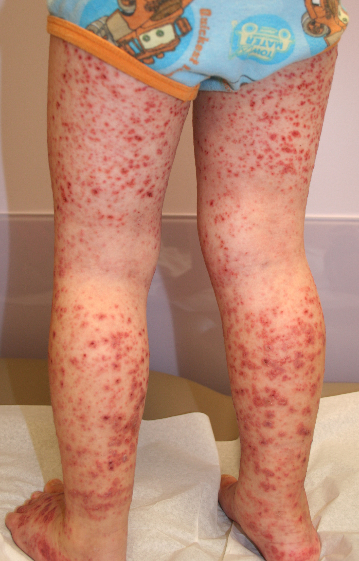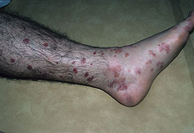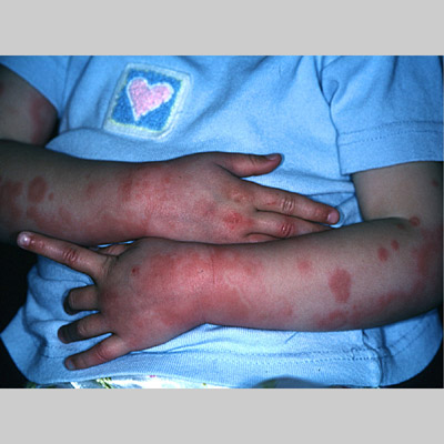 The most widely recognized subgroup of idiopathic CNV is the Henoch-Schönlein syndrome, formerly known as anaphylactoid purpura. It occurs predominantly in children, with a peak incidence at 5 to 6 years of age, but it may occur in adults. A history of a recent upper respiratory tract infection, especially streptococcal, is obtained in up to 75 percent of individuals; however, Henoch-Schönlein syndrome has been associated with other infections. Sites of involvement include the skin, synovia, gastrointestinal tract, and kidneys. Symptoms may be colicky abdominal pain, melena, arthralgia, and hematuria. Long-term morbidity from progressive renal disease occurs in 5 percent of patients. The spread of purpura to the upper parts of the trunk is a predictive factor for renal involvement.