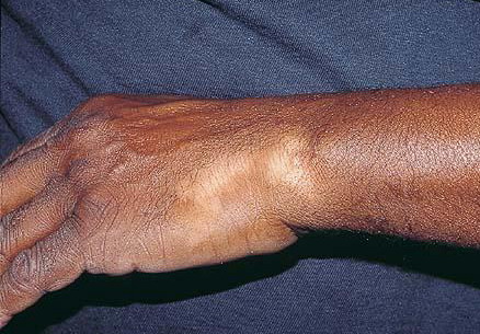 types of pathologies, such as destruction of melanocytes, dilatation of dermal blood vessels, or inflammation of vessel walls with extravasation of red blood cells. As such, color provides meaningful insight into pathologic processes of the skin and facilitates clinical diagnosis. Pigmentary changes represent an important and common type of macular color change and may be described as hyperpigmented (as in post-inflammatory hyperpigmentation), hypopigmented (as in tinea versicolor), or depigmented (as in vitiligo).