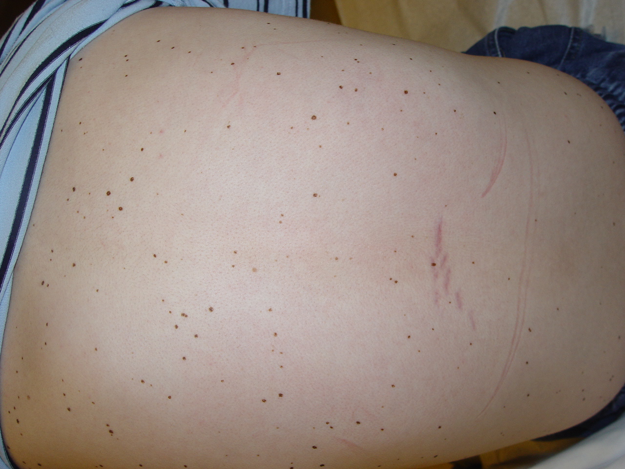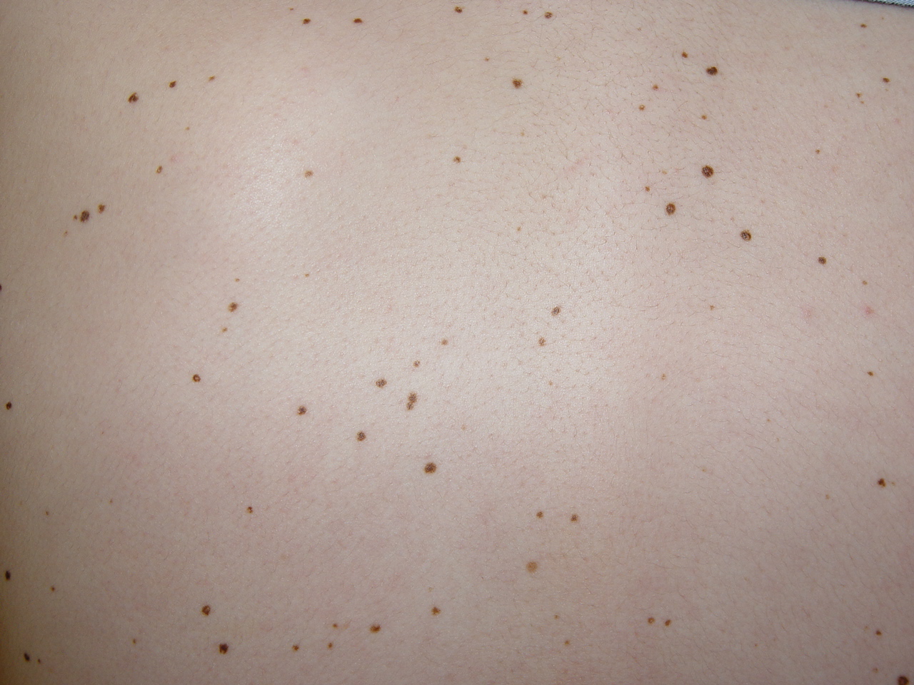 Lentigines are macular hyperpigmentations in which the number of epidermal melanocytes is increased and there are no nests of melanocytes as are present, by definition, in nevi. The term “lentigo” is derived from the Latin “Ienz,” meaning lens or lentil . Thus, the term in its original usage is clinical, referring to a small ovoid or lensshaped pigmented spot. The term has come to be applied to larger pigmented lesions, especially those that recapitulate to a greater or lesser extent the histologic features of a lentigo simplex: basal proliferation of melanocytes arranged as single cells rather than in nests, typically but not always associated with elongation of the rete ridges. This pattern of melanocytic proliferation is termed “Ientiginous.” Lentiginous melanocytic proliferation is seen in the macules of solar lentigo and lentigo simplex and in the macular or plaque components of lentiginous junctional and compound nevi, of lentiginous dysplastic nevi, and of lentiginous melanoma,