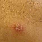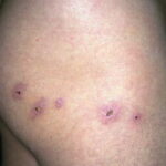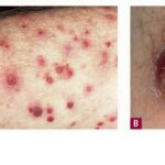o Each papule heals within 2-8 weeks, leaving a hypopigmented or hyperpigmented, depressed, oval, and varioliform scar.