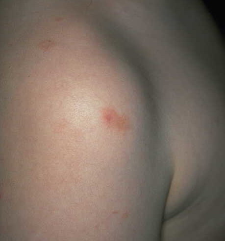 • The skin distribution of lesions, characteristically, is on the trunk and extremities, although the palms and/or soles, face, scalp, oral mucosa,9 and anogenital area also may be involved.