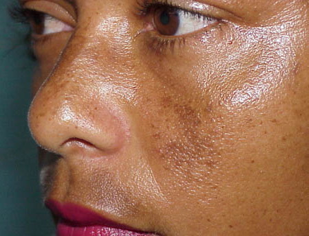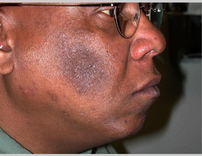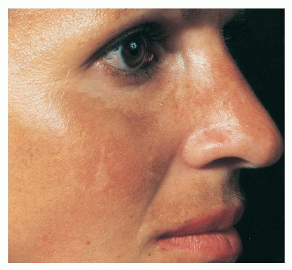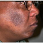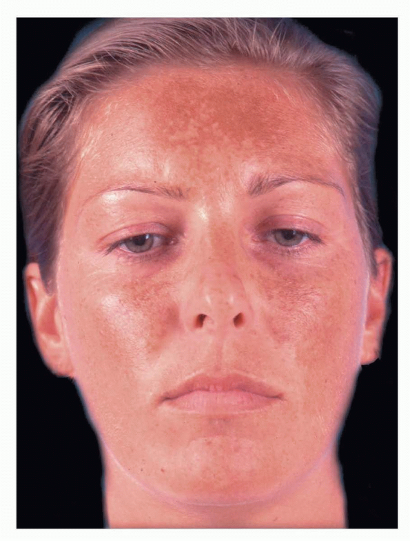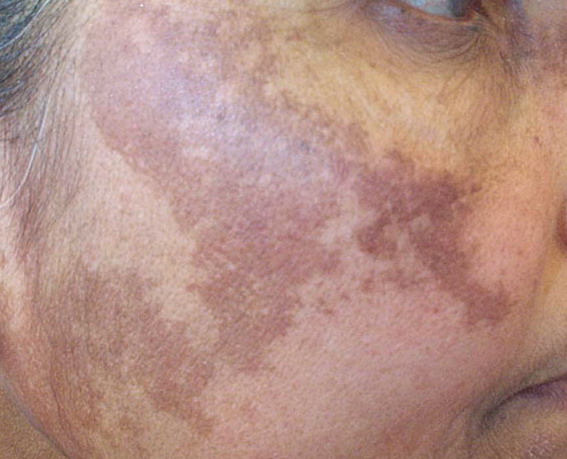 From its appearance under Wood’s lamp, melasma is classically classified into epidermal, dermal, and mixed. Clinically, the epidermal type has sharp borders, whereas the mixed or dermal type has a blotchy appearance. Epidermal pigmentation is accentuated under Wood’s lamp, whereas dermal pigmentation is less apparent. In most patients, the melanin distribution is in the basal layer of the epidermis and the dermis.