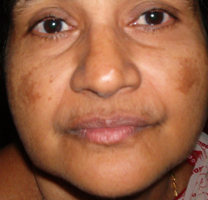 Sun exposure is one of the most important causative factors, and sun protection should be included in management. Epidermal pigmentation is known to be more sensitive to topical treatment than dermal pigmentation. Hypopigmenting agents as hydroquinone, tretinoin cream, azelaic acid, rucinol, and kojic acid are helpful when used for prolonged periods. The Kligman formula is a popular combination of hydroquinone, tretinoin, and a weak topical corticoid. Chemical peels and laser therapy may be helpful in the treatment of melasma, but can also result in further unwanted hyperpigmentation. Sometimes, melasma slowly disappears after discontinuation of the hormonal stimulus and/or careful sun avoidance