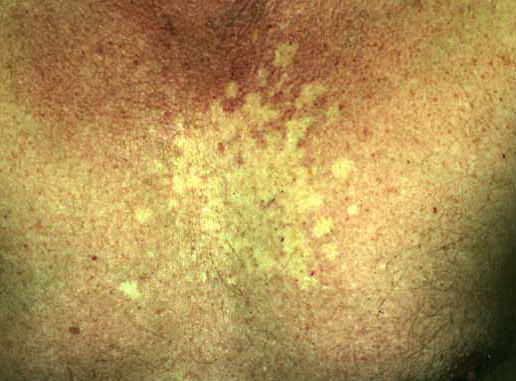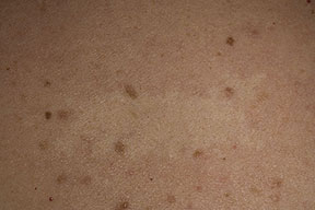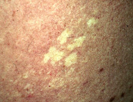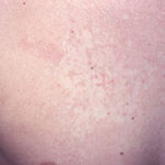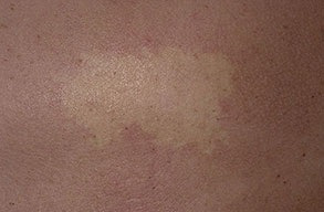 Nevus anemicus is a congenital vascular anomaly that presents clinically as a hypopigmented macule or patch, as shown below. The lesional pallor is due to a localized hypersensitivity to catecholamines with resultant vasoconstriction. Nevus anemicus is an uncommon disorder and was first described by Vorner in 1906.