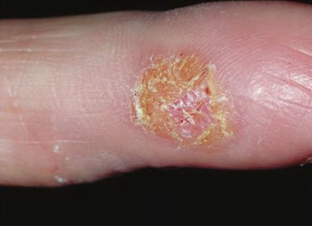 Pagetoid reticulosis (Woringer-Kolopp disease) is a distinct variant of MF that is characterized by the presence of localized patches or plaques with an intraepidermal proliferation of neoplastic cells. Patients present with a solitary psoriasiform or hyperkeratotic patch or plaque, which is usually localized on the extremities  and is slowly progressive. Unlike in classic MF, extra-cutaneous dissemination has not been observed.