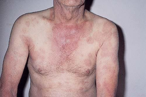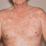 LPP requires more aggressive therapy: high-potency topical corticosteroids with phototherapy such as broadband UVB, narrowband UVB, or psoralen and ultraviolet A (PUVA). The goal of treatment is to suppress the disorder to prevent possible progression to overt MF. Other methods of treatment, such as topical nitrogen mustard, have been used, particularly for the poikilodermatous type. The patient should be examined carefully every 3 months initially and every 6 months to 1 year subsequently for evidence of progression. Repeated multiple biopsies of suspicious lesions should be performed. Cases that satisfy the clinicopathologic criteria for early MF can be treated with broadband UVB, narrowband UVB, PUVA, topical nitrogen mustard, topical bexarotene gel, topical imiquimod, or topical carmustine (BCNU). Electron-beam radiation therapy generally is reserved for more advanced, infiltrated lesions of MF.