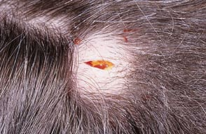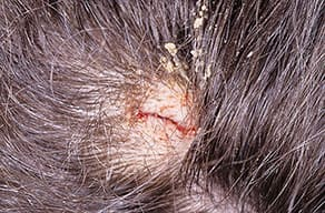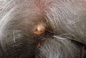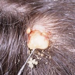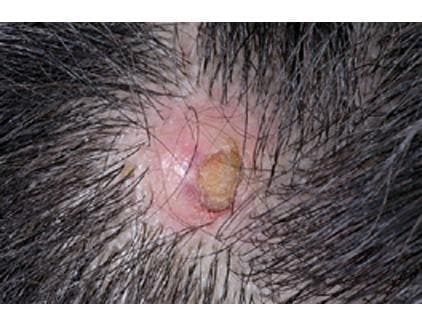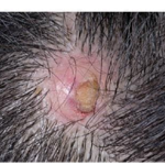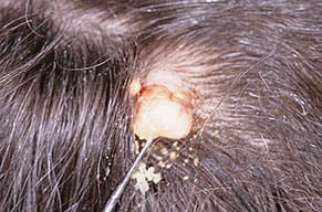 COMPLICATIONS Although these lesions largely remain asymptomatic, rupture and infection can occur. Proliferating trichilemmal tumors are a variant of this benign lesion and are commonly found on the scalp of elderly women. This lesion can destroy adjacent lesions and ulcerate, mimicking skin cancer. Malignant degeneration of pilar cysts into malignant proliferating trichilemmal cysts can occasionally occur.