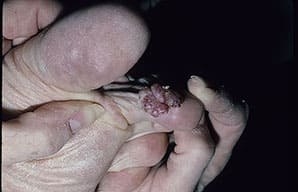 • Reports have described 2 women who had an associated malignancy. One was found to have intraductal breast carcinoma underlying the fibroepithelioma of Pinkus, and the other was found to have a perianal fibroepithelioma harboring Paget cells.