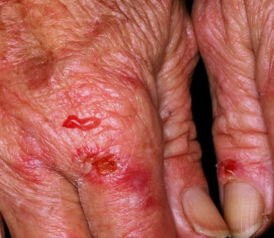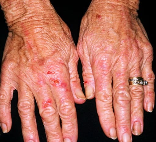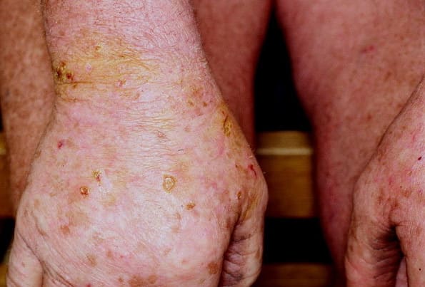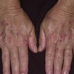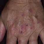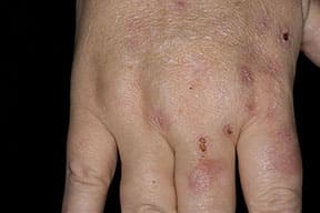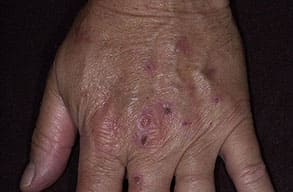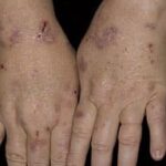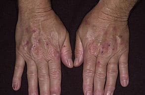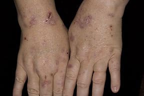 In patients with chronic renal failure who are receiving maintenance hemodialysis, an eruption indistinguishable from that of porphyria cutanea tarda may develop on the dorsa of the hands and fingers during the summer months . Rarely, blisters are seen also on the face, and atrophic scarring develops . In a series of 180 patients receiving hemodialysis, 28 (16%) showed this type of eruption . Normal porphyrin levels in urine, stool, and plasma are the rule in hemodialyzed patients developing clinical signs of porphyria cutanea tarda. However, in a few patients receiving hemodialysis for chronic renal failure, a true porphyria cutanea tarda coexists . In such patients, if a certain degree of diuresis persists, urinalysis may not be representative of the porphyria metabolism, and the plasma and fecal porphyrins should always be measured .