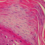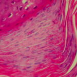 Ultrastructural studies of the spongiform pustule of Kogoj, one of the most characteristic histologic structures encountered in psoriasis, reveal that it is located in the uppermost portion of the spinous and granular layers, where neutrophils lie intercellularly in a multilocular pustule in which the spongelike network is composed of degenerated and flattened keratinocytes . |