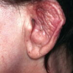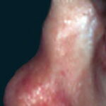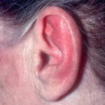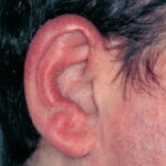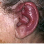 The incidence of relapsing polychondritis (RP) has been estimated to be 3.5 per 1 million in Rochester, Minnesota.1 The peak age for disease onset is the fifth decade; however, development of the disease may occur in young children and in the elderly.2 Although most cases have been reported in Caucasians, there is no evidence supporting a role for ethnic or geographic factors.