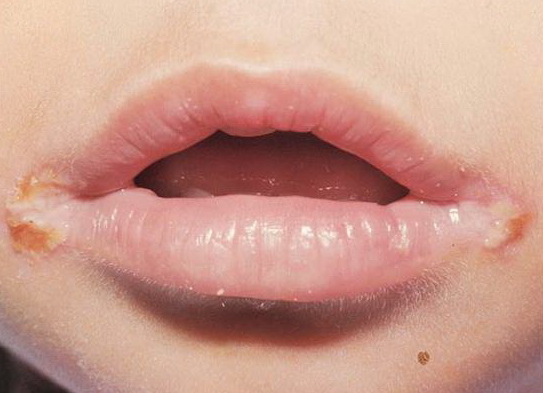 Riboflavin deficiency. Angular stomatitis = التهاب زاويتي الفم بسبب عوز الريبوفلافين