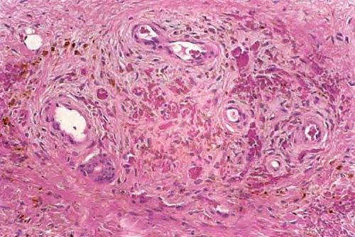 Stasis dermatitis with vascular proliferation = التهاب الجلد الركودي مع تكاثر وعائي