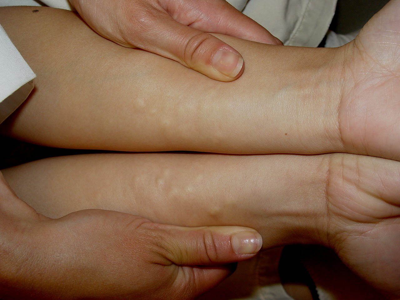 Eruptive vellus hair cysts can mimic steatocystoma multiplex clinically. They may have a tuft of hairs protruding from the cyst centrally, with findings of vellus hairs in the lumen with follicles in the wall. Epidermal inclusion cysts also have to be excluded. The pathogenesis of steatocystoma, epidermal inclusion cysts, and eruptive vellus hair cysts may be similar.