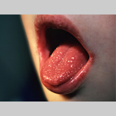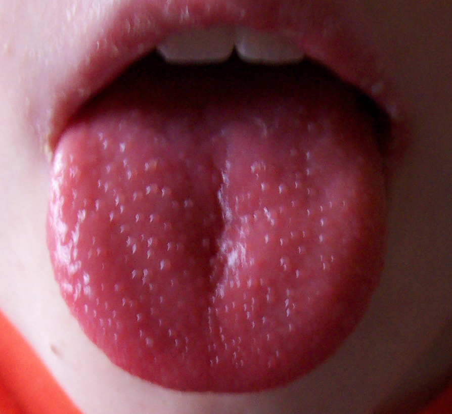 Strawberry tongue = اللسان بشكل الفريز