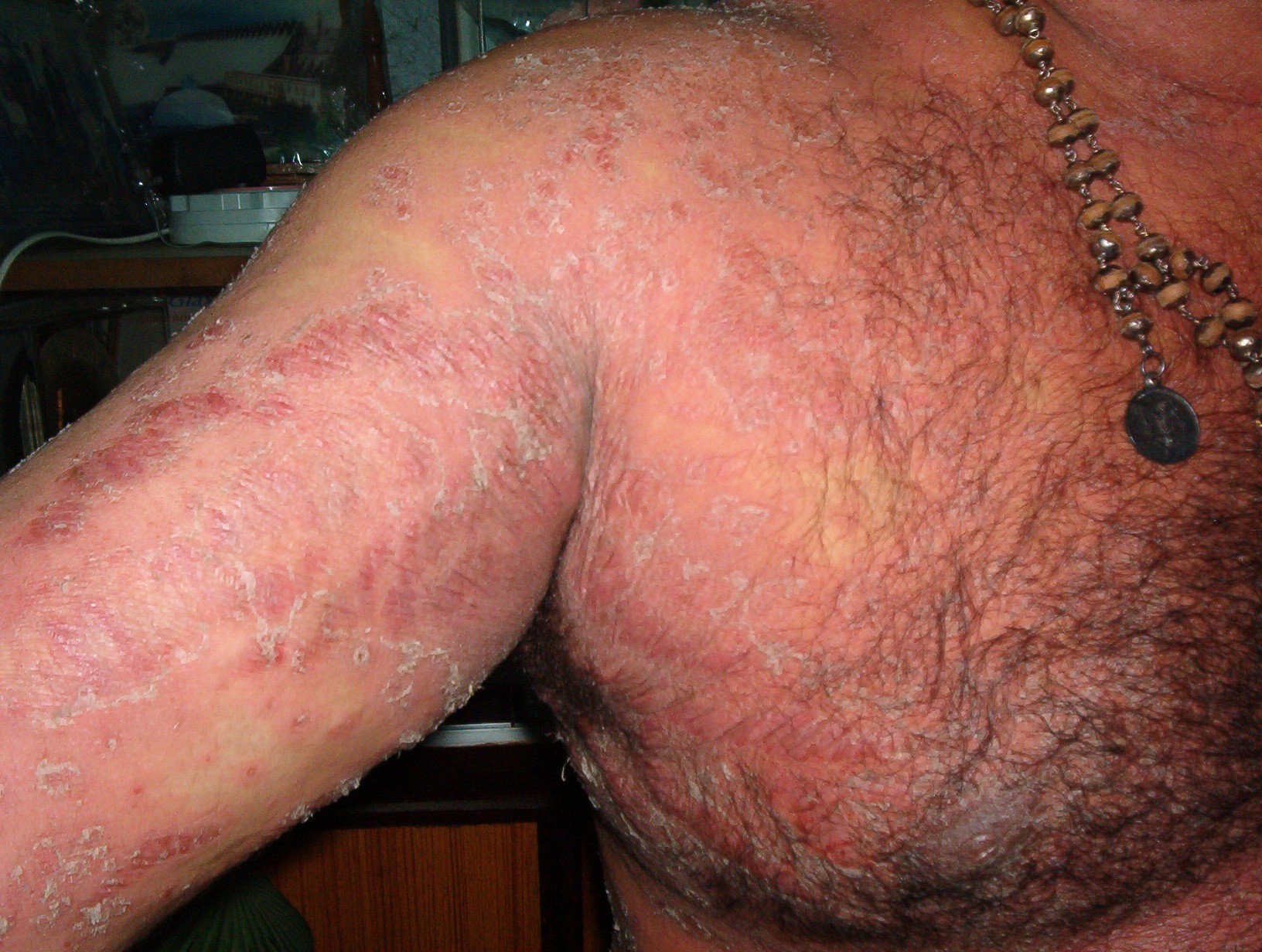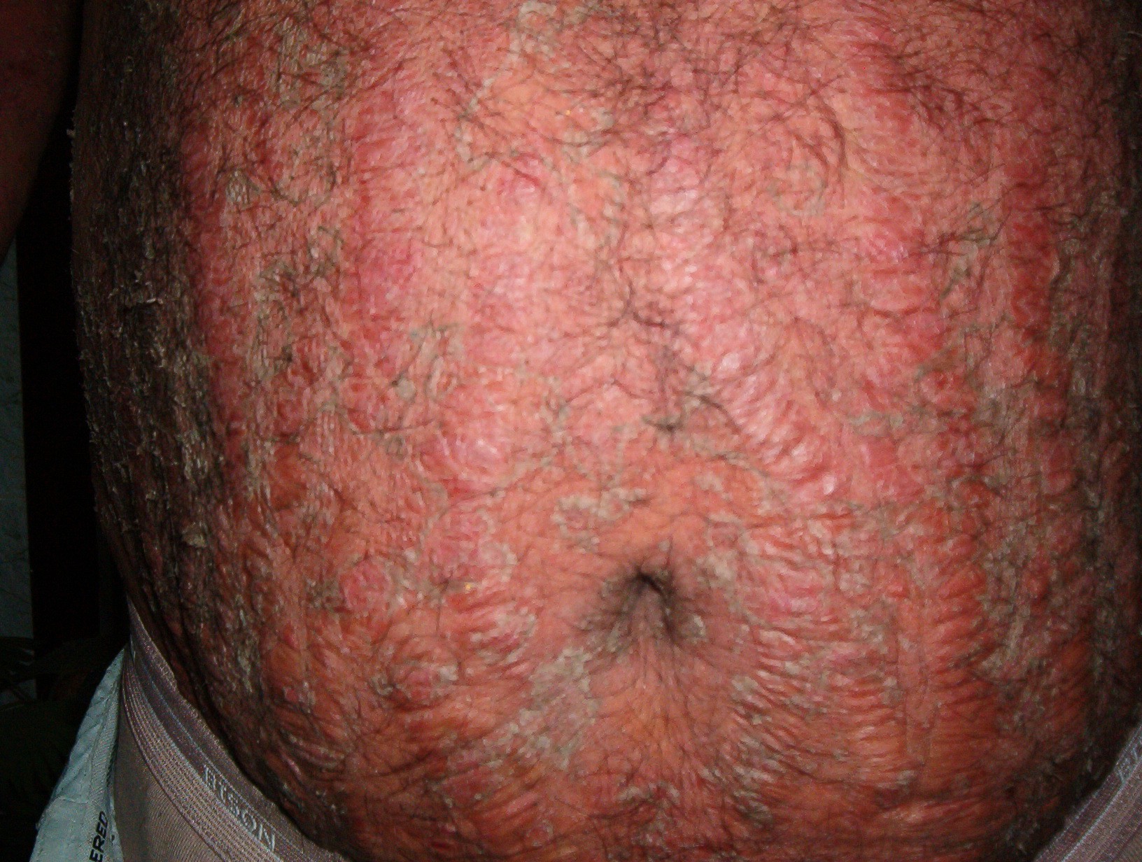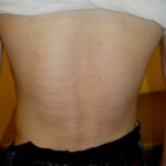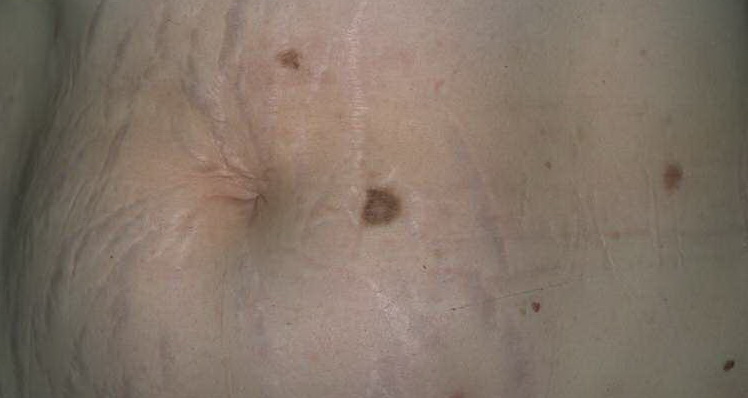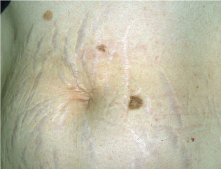 The diagnosis of striae distensae is usually simple, but the differential diagnosis does include linear focal elastosis (elastotic striae) that was first described by Burket et al. in 1989. Linear focal elastosis is characterized by rows of yellow palpable striaelike bands on the lower back. Unlike striae, the lesions are raised and yellow rather than depressed and white. Elderly men are most commonly affected, although cases in teenagers have been described. Linear focal elastosis is probably not an uncommon condition. Histologically, there is a focal increase in the number of elongated or fragmented elastic fibers and a thickened dermis. It is postulated that linear focal elastosis may represent an excessive regenerative process of elastic fibers and could be thought of as a keloidal repair of striae distensae.